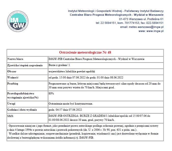 OSTRZEŻENIE BURZE Z GRADEM / 1
